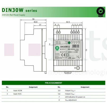 - Ausgangsspannung: 12 V DC (justierbar 10,8 - 13,6 V)
